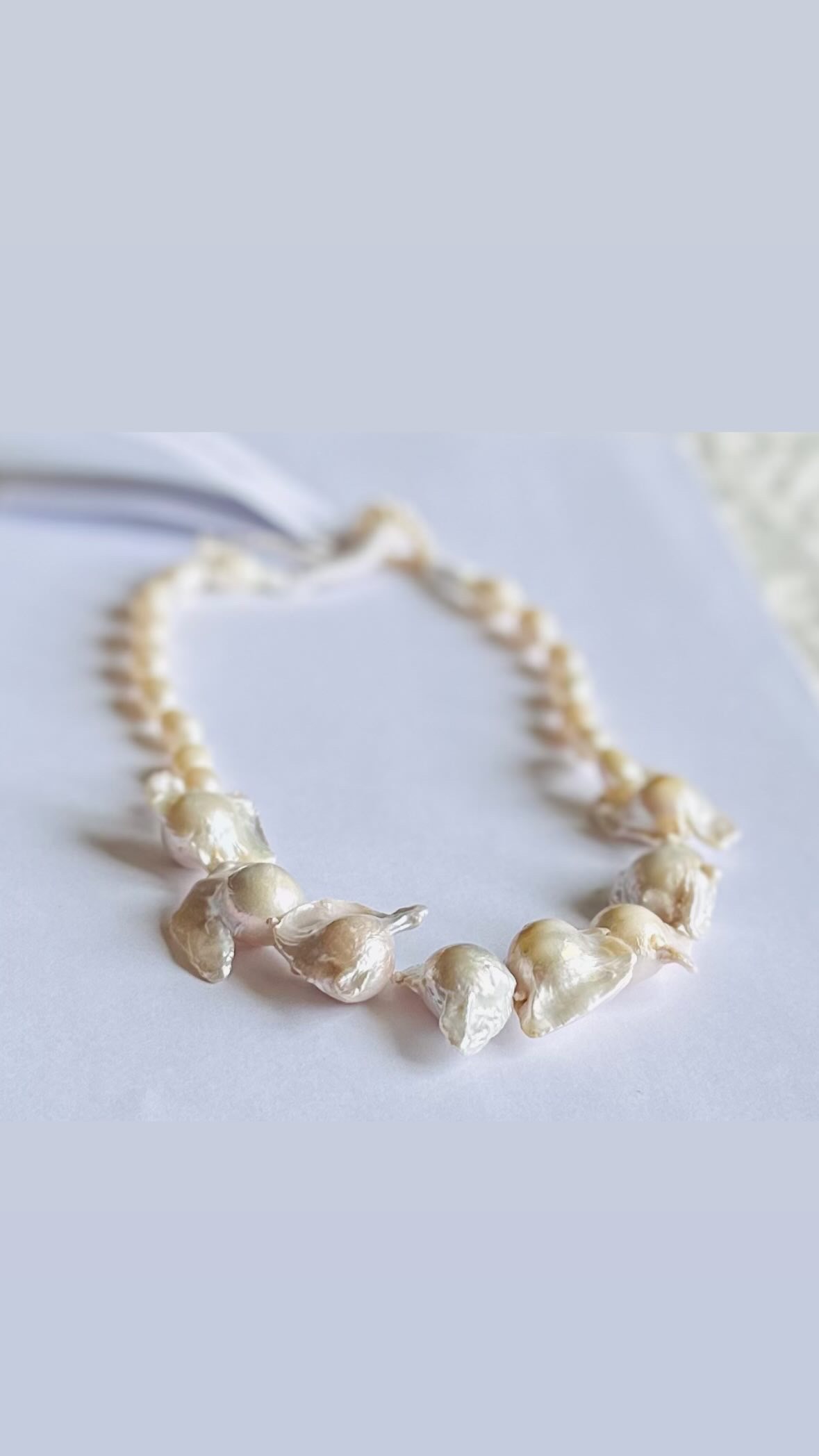 Feito artesanalmente com pérolas naturais selecionadas, este colar é a união perfeita entre delicadeza e sofisticação. Cada detalhe é cuidadosamente trabalhado à mão, resultando em uma peça única, com o brilho sutil e a elegância atemporal das pérolas.