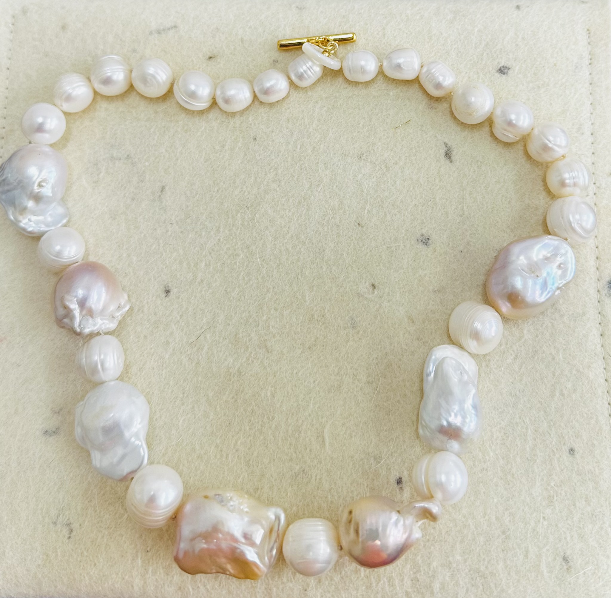 Feito artesanalmente com pérolas naturais selecionadas, este colar é a união perfeita entre delicadeza e sofisticação. Cada detalhe é cuidadosamente trabalhado à mão, resultando em uma peça única, com o brilho sutil e a elegância atemporal das pérolas.