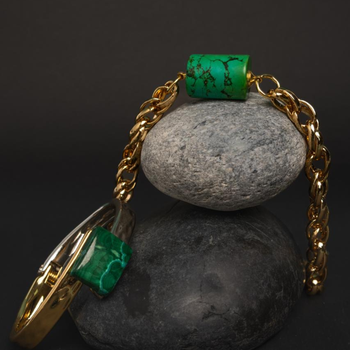 Colar elegante em corrente dourada com um imponente detalhe em Pedra Turquesa. A turquesa é símbolo de proteção, energia positiva e equilíbrio, tornando a peça não apenas um acessório, mas também um amuleto de bem-estar. Seu design moderno e atemporal permite compor desde looks casuais até produções sofisticadas. Uma joia que une força, sofisticação e significado, ideal para mulheres que desejam destacar sua autenticidade com estilo.